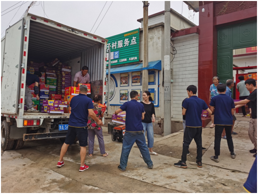 7月23日,鄭州中聯(lián)收獲機械有限公司為滎陽市汜水鎮(zhèn)口子村群眾捐贈急需的方便食品500箱和飲用水1000件,并派公司員工親自送到受災(zāi)地區(qū)人們手中。